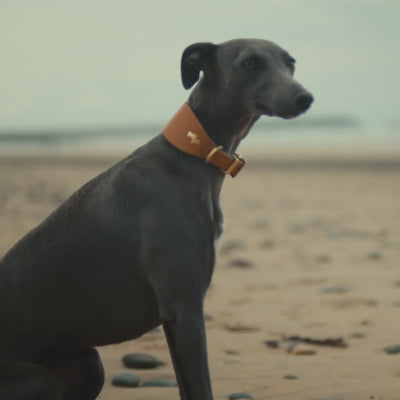 The extra-wide width and oval shape perfectly complements the sighthound breed, and it will only look better with age, as the collar develops a beautiful mellow tone and moulds to your dog through many adventures.